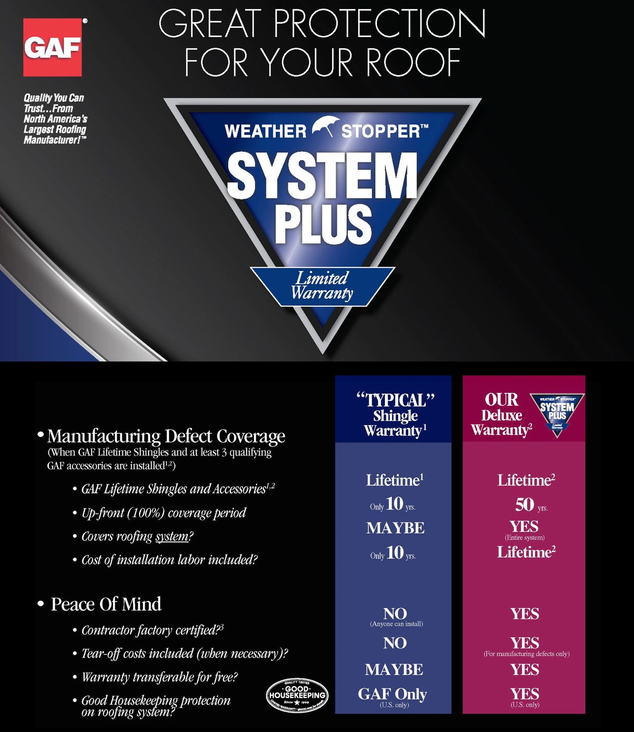Gaf weather stopper system plus warranty. It is your Installers responsibility to register this warranty within 45 days of installation. GAF Weather Stopper System Plus Ltd. Warranty provides coverage against manufacturing defects for all major GAF components on.