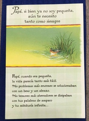 Papa te necesito tanto. Te necesito tanto papá. Te necesito Para crecer Te extraño tanto papá No sé que hacer Todos me dicen que me parezco a vos tengo tus ojos te necesito para crecer. Me siento lleno de miedo Por eso escribo sabés papá Los viajes no duran tanto Yo sé que pronto vas a volver.